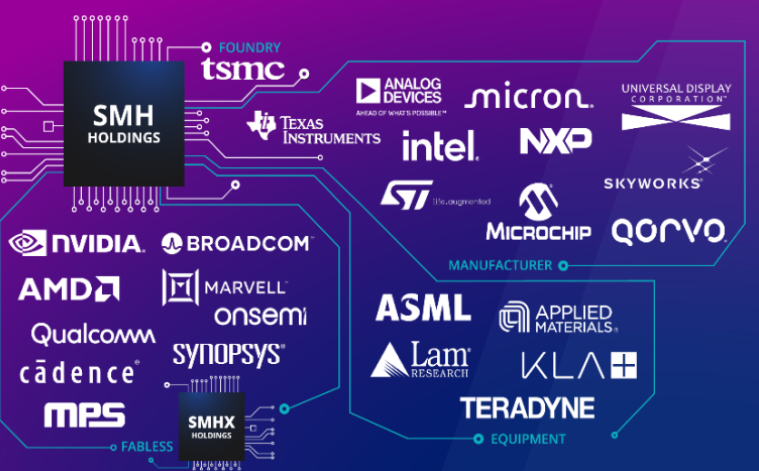 SMH는 미국 상장 반도체 기업 25개로 구성된 지수를 추종하며, 자산의 최소 80% 이상을 반도체 산업에 투자합니다. 여기서 중요한 건 구성의 질입니다.